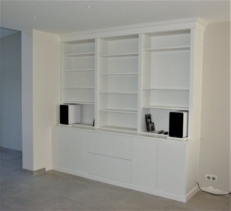Bibliothèque - Charenton - Val de Marne 94 Médium peint (Val de Marne-94) Bibliothèque en médium peint. Peinture laque mate sikkens. Portes et tiroirs.