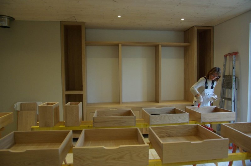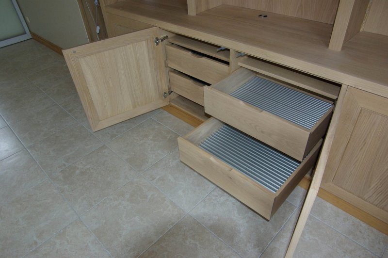 - Meubles en chêne massif, dos en contreplaqué placage chêne.