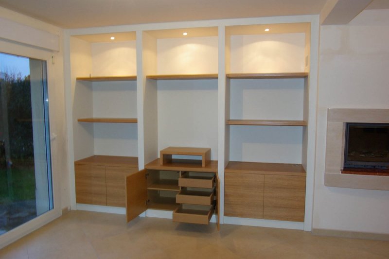 Bibliothèque et meuble TV - St Ouen l’Aumône - Val d’Oise 95 Médium peint et placage chêne (Val d’Oise- 95)