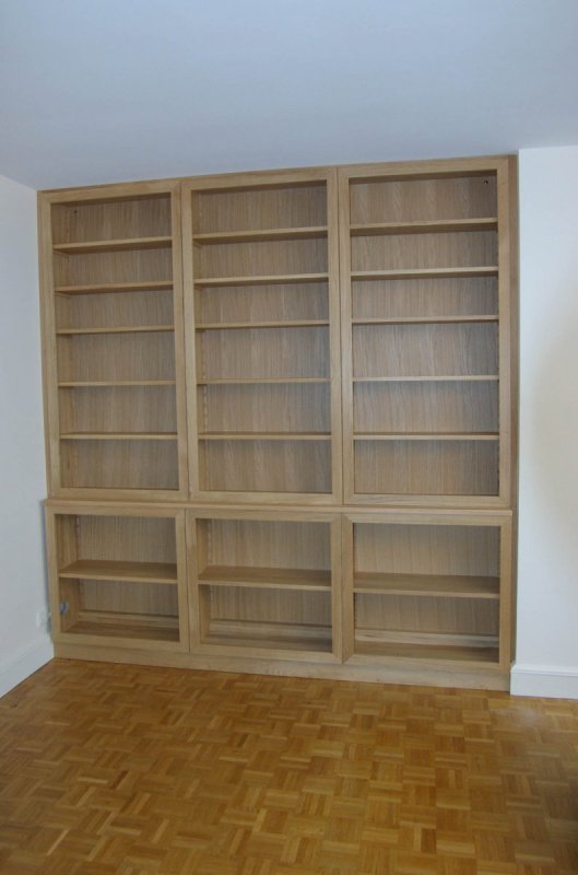 Bibliothèque - Paris 15ème Chêne massif (Ile de France-75) Bibliothèque sur mesure en chêne massif. Finition cire naturelle.