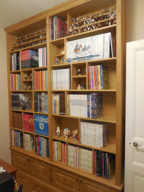 Bibliothèque pour BD - Bourg la Reine - Hauts de seine 92 Chêne massif (Hauts de Seine-92) Bibliothèque sur mesure dédiée à une collection de bandes dessinées. Teinte à l’alcool. Cire naturelle.