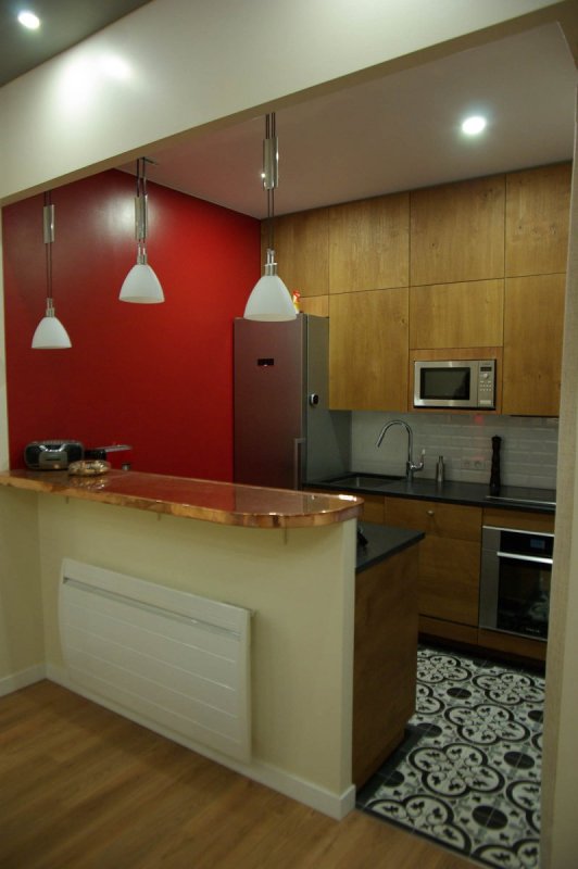 - Petite cuisine parisienne sur mesure en finition placage de chêne brossé.