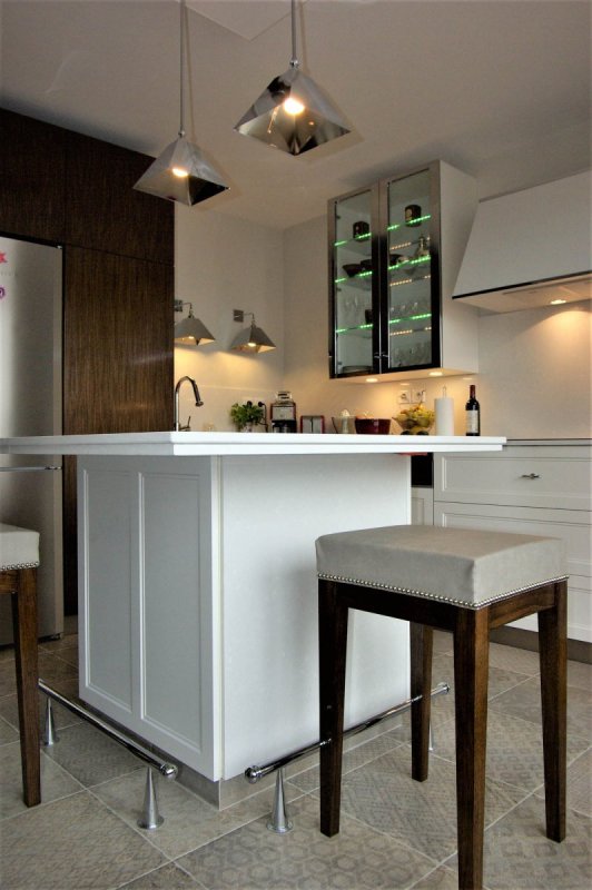 Façades blanches en peinture laque mate.
