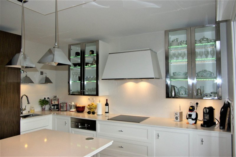Cuisine sur mesure alliant harmonieusement des matériaux raffinés.
