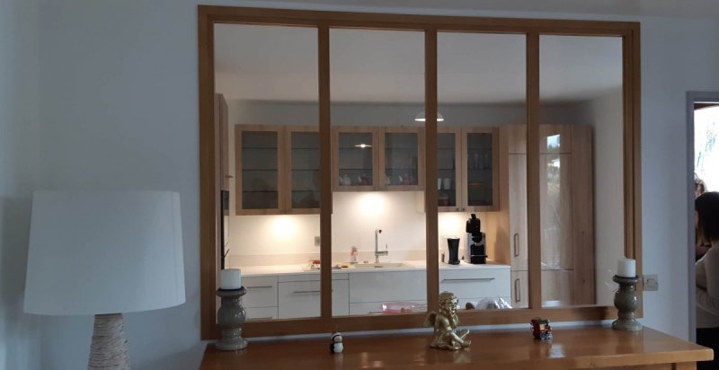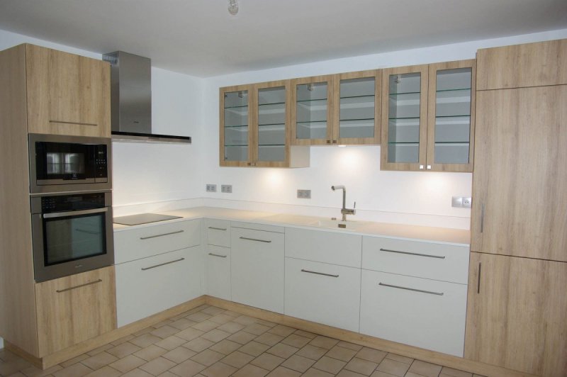 - Cuisine sur mesure en finition mélaminé « chêne sauvage ».