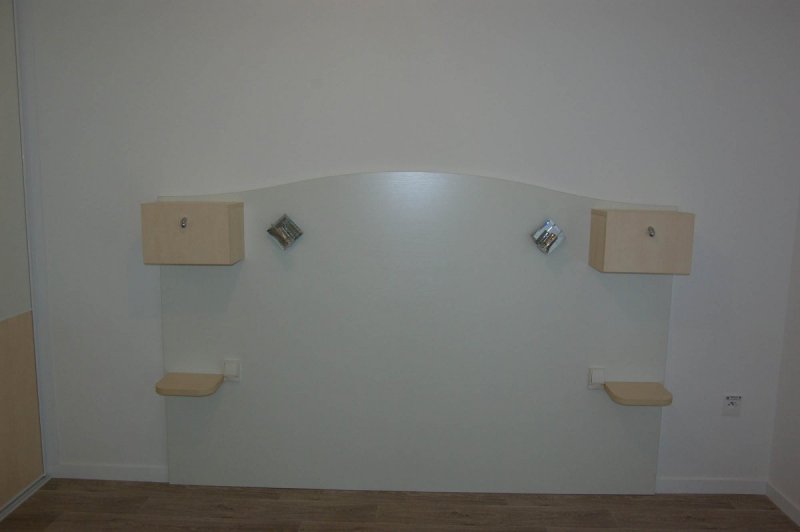 Aménagement d’une chambre - Beauvais - Oise 60 Mélaminé (Oise-60) Ensemble sur mesure composé d’un dressing, une tête de lit et d’une console. Mélaminés « blanc structuré et bouleau » de chez Egger.
