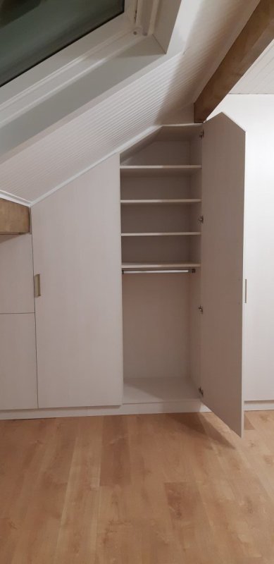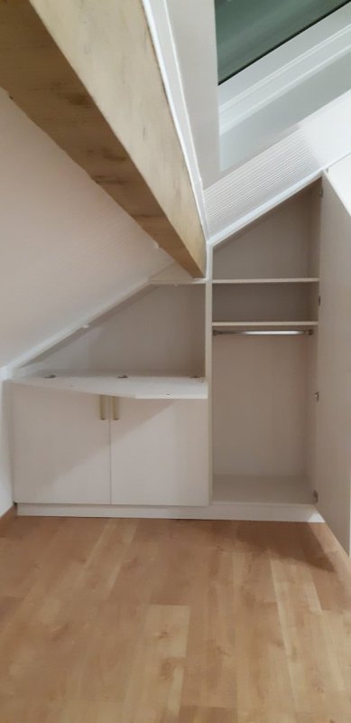 Dressing dans une chambre-Sevran - Seine St Denis 93 Mélaminé woodline Egger (Seine saint Denis-93) Grand dressing sous-pente Portes et abattant Penderies fixes et étagères