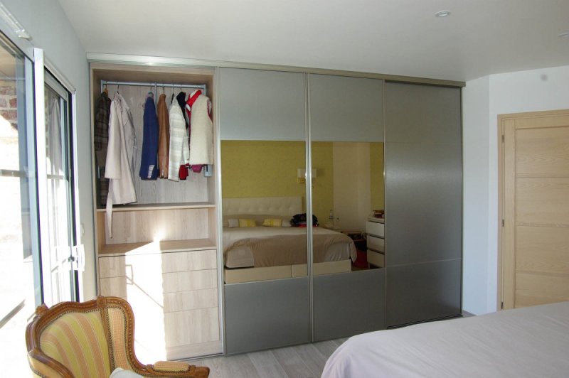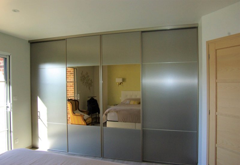 - Portes coulissantes en finition « inox brossé » et miroirs argenté.