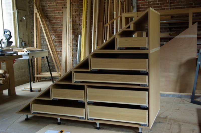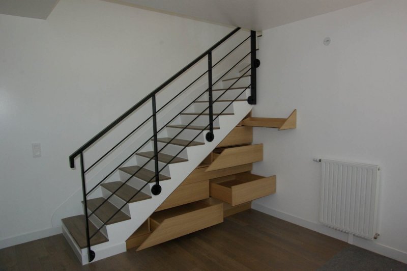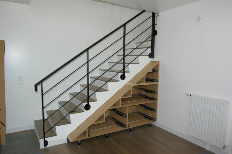 - Réalisation d’un meuble de rangement sous escalier sur mesure.