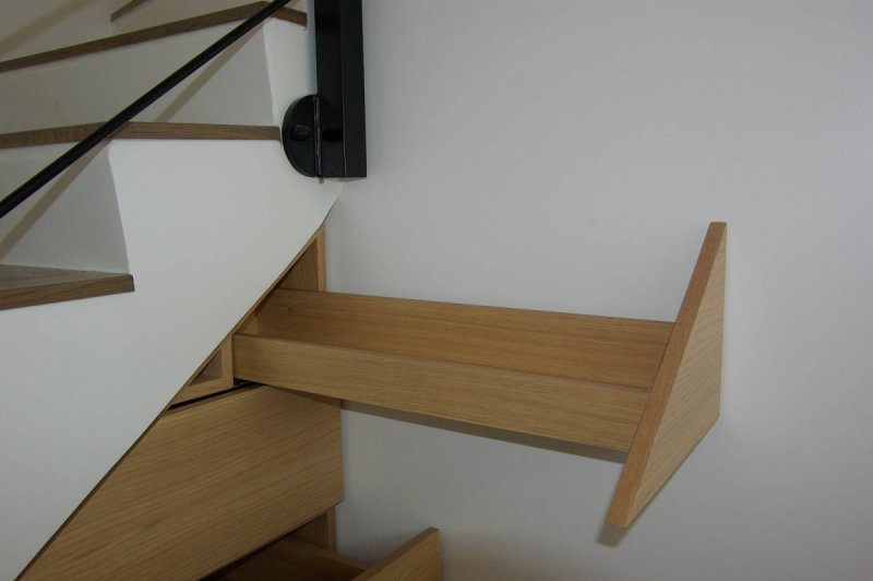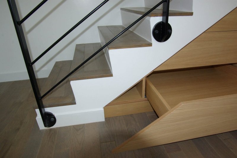 Agencement sous-escalier - Paris 19ème Placage chêne ébénisterie (Ile de France-75)